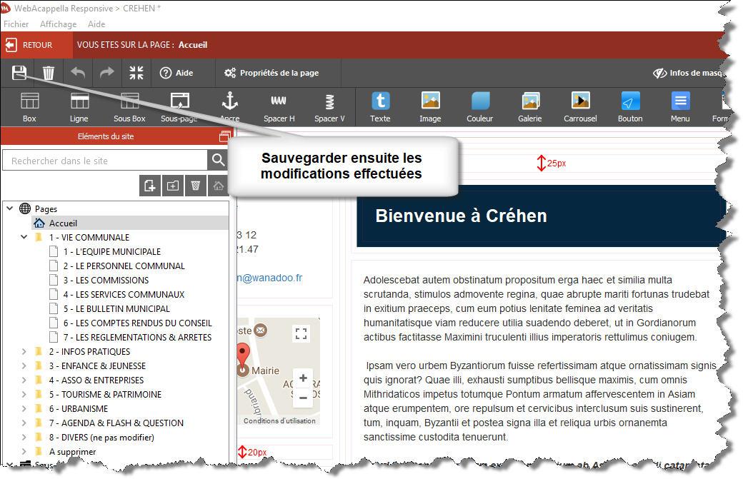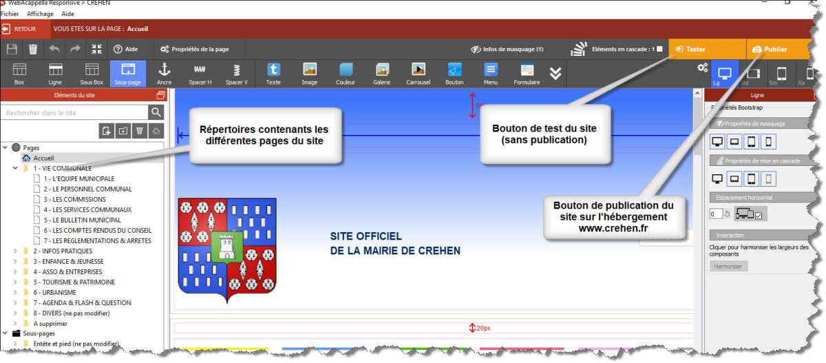 Pour accéder aux différentes pages du site, sélectionner dans le répertoire de gauche comme indiqué sur image ci-dessous