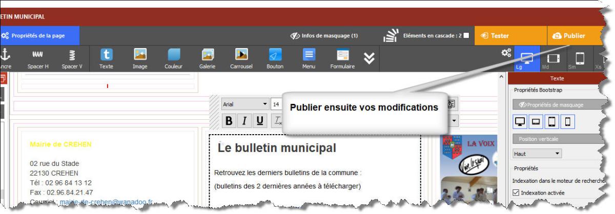 6 - Publier ensuite le site pour mettre en place les modifications effectuées