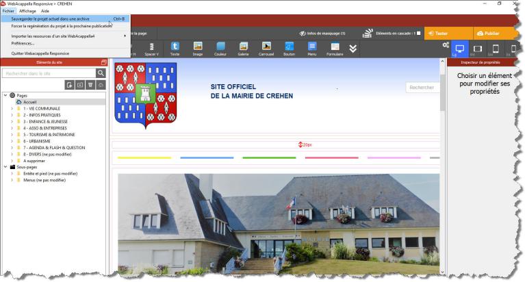 2 - Sélectionner le sous menu "Sauvegarder le projet dans une archive"
